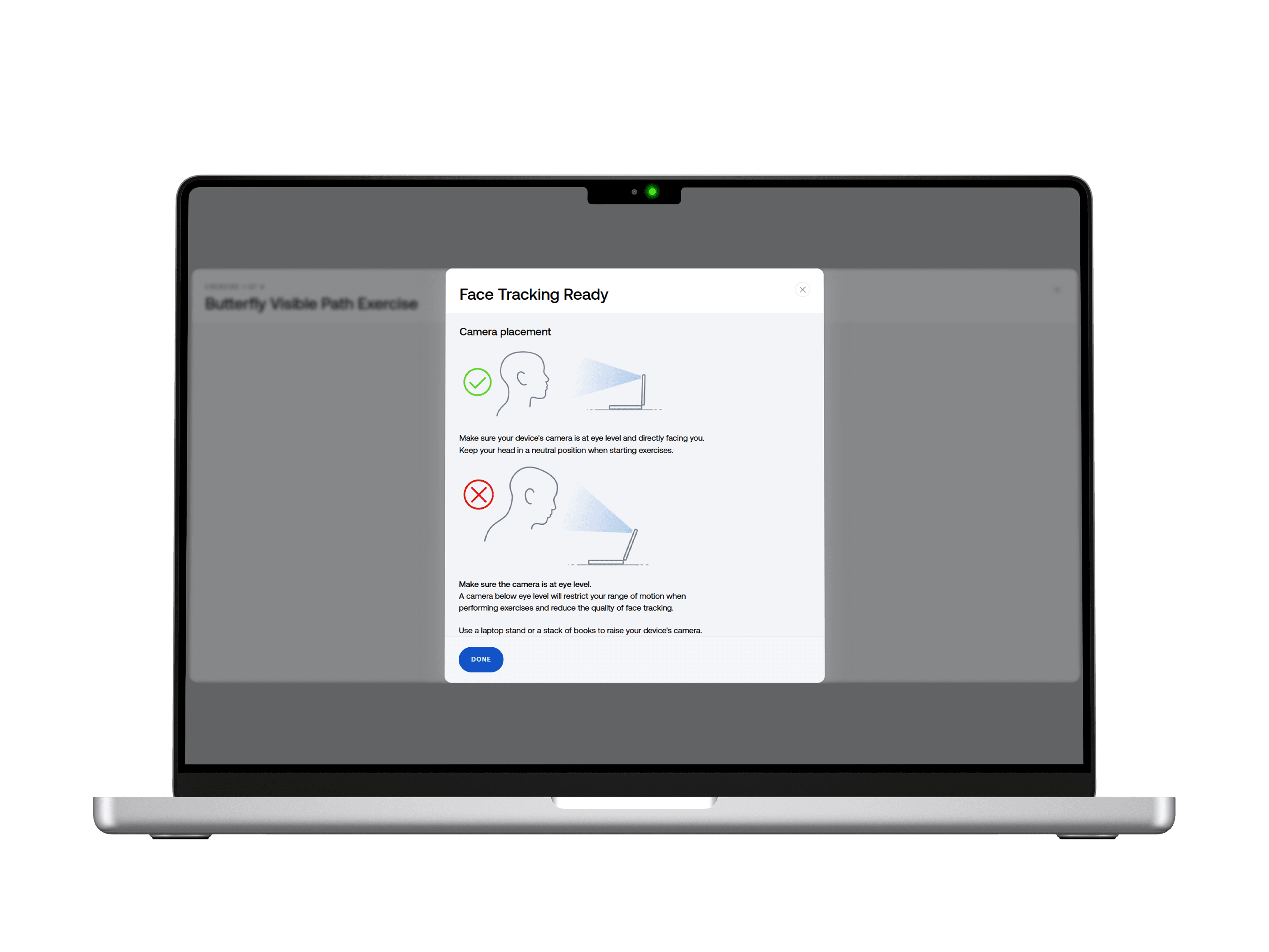 NeckCare Home delivers clinician-prescribed sensorimotor exercises that patients complete at home on their own device between visits.